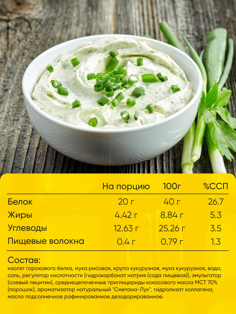 В чипсах целых 40% белка благодаря содержанию гидролизованного коллагена и горохового белка. Коллаген – один из самых важных белков в организме, он составляет примерно треть всего белка и ответственен не только за упругость кожи, но и за состояние костей, ногтей, хрящей, суставов и сосудов. Употребление коллагена способствует повышению эластичности кожи, связок, сухожилий и сосудов.