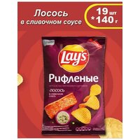 Чипсы рифлёные Lay’s Лосось в сливочном соусе, 19 шт. по 140г: сравнение цен, характеристики, фото, актуальное наличие и цены.