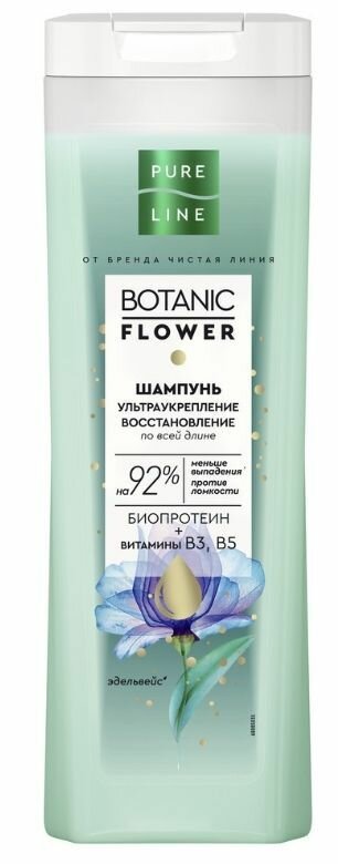 Специально для восстановления и укрепления с шампунем Pure Line от бренда Чистая Линия Ультраукрепление. В составе шампуня витамины В3, B5 для питания кожи головы и стимулирования роста волос. Формула с биопротеином помогает укрепить волосы от корня по всей длине и предотвратить потерю из-за ломкости’. Активные компоненты работают на трех уровнях2: • уход за кожей головы, • защита от потери волос1, • восстановление волос от корней до кончиков. Свойства подтверждены в ходе потребительского тестирования*. Так, 96% респондентов отметили, что шампунь Чистая Линия Ультраукрепление хорошо промывает кожу головы; 97% –после применения шампуня волосы чистые и легкие от самых корней; 90% – после применения шампуня волосы более плотные на ощупь; 87% – после применения шампуня волосы на ощупь более густые и крепкие. Результат: сильные, густые, блестящие волосы. Для максимального эффекта используйте всю систему Ультраукрепление и восстановление: шампунь, бальзам-маска, концентрат-активатор для роста волос, крем-флюид 10в1. В серии ухода за волосами представлены различные средства, которые делают заботу о своей красоте качественной и доступной. Продукты Чистая Линия не тестируются на животных, что подтверждено лицензией международной организации PETA. Мы берем лучшее от природы, чтобы позаботиться о вашей красоте, и верим, что о природе нужно заботиться так же, как о себе. Вы с нами? Узнайте больше на chistaya-linia. ru. [’] при совместном использовании с бальзам-маской [1] по причине ломкости. [2] при совместном использовании с продуктами всей линейки. *Свойства подтверждены потребительским тестированием при участии 150 женщин, min 87% согласившихся, РФ, 2022. PETA approved. Global Animal Test Policy – Одобрено PETA. Глобальная политика по тестированию на животных. Ультраукрепление в линейке продуктов PURE LINE. БИО в отношении компонентов означает их натуральность.