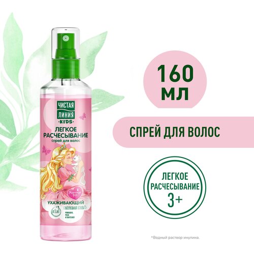 Специально для детских волос, в том числе склонных к спутыванию, эксперты бренда Чистая Линия разработали спрей Легкое расчесывание. • Имеет натуральную основу° и содержит природный кондиционер для волос. • Масляный экстракт ромашки способствует росту волос и их укреплению. • Экстракт лепестков розы увлажняет волосы и придает блеск. • Пантенол смягчает и разглаживает волосы. • После применения спрея для волос расчесывание становится в два раза легче1! Подходит для ежедневного применения, как на влажных, так и на сухих волосах. Рекомендован для детей от 3-х лет. Идеально использовать с шампунем-бальзамом Чистая Линия Шелковистые локоны. Спрей имеет приятный аромат и наверняка придется по душе маленьким модникам и модницам. В новой детской серии Чистая Линия представлены самые востребованные продукты: шампунь-гель, гель-пена, спрей для расчесывания. Все они разработаны с учетом особенностей именно детской кожи и волос. Продукты отличает высокое качество, тщательно продуманные составы и доступная цена. Новинки представлены в стильной упаковке, которая так и просится в руки. Эксперты бренда Чистая Линия создали продукты, которые смогут превратить ежедневные гигиенические процедуры в моменты радости и удовольствия, проведенные вместе с ребенком. Еще больше информации – на официальном сайте бренда chistaya-linia. ru. °Водный раствор инулина. [1] По результатам инструментального теста производителя, при совместном использовании Шампунь-бальзама для волос Чистая Линия Шелковистые локоны и Cпрея для волос Чистая Линия Легкое Расчесывание в сравнении с шампунем без кондиционирующих добавок.