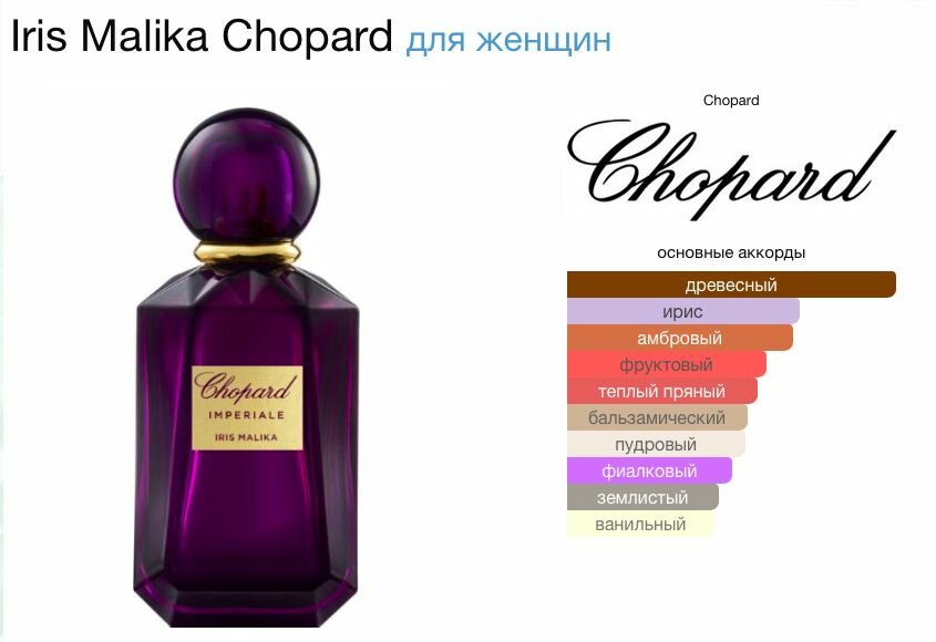 Купить CHOPARD, Imperiale — Iris Malika, 100мл, Парфюмерная вода женская с доставкой по всей России. CHOPARD, Imperiale — Iris Malika, 100мл, Парфюмерная вода женская: сравнение цен, характеристики, фото, актуальное наличие и цены.