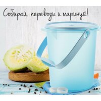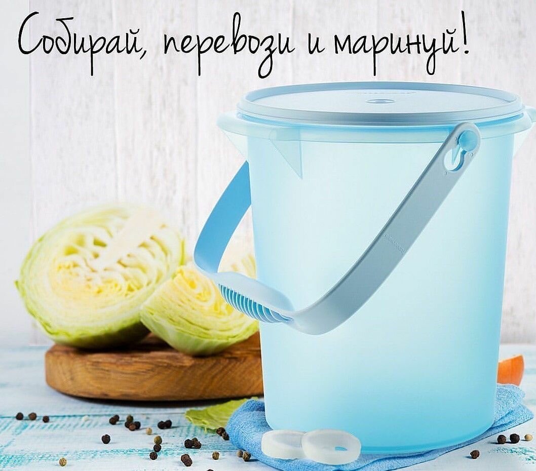 - Оглянитесь вокруг! Ваши друзья замачивают шашлык в тазике, а потом думают, как его доставить на место. Другие тратят уйму времени на раскладывание овощей для маринования по трехлитровым банкам. А Вы можете решить эти проблемы быстро и просто вместе с вместительной ведром Tupperware!