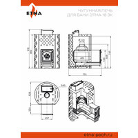 В нижней части топочной камеры размещается чугунный колосник, предназначенный для подачи воздуха на дрова снизу. Для повышения теплоотдачи и максимального использования энергии горения дров в верхней части печи расположен пламегаситель, изменяющий направление движения дымовых газов и обеспечивающий полное сгорание. Чугунная деталь перекрывает прямой путь пламени и газов в дымоход, что улучшает тепловые показатели печи этна ЗК 18.