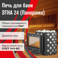 Купить Чугунная печь для бани этна 24 (Панорама) «М» диаметр дымохода: 120 мм с доставкой по всей России. Чугунная печь для бани этна 24 (Панорама) «М» диаметр дымохода: 120 мм: сравнение цен, характеристики, фото, актуальное наличие и цены.
