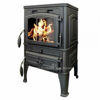 Печь-камин Guca Lava с конфорками подходит для обогрева помещения объемом до 250 куб. м. Лава сделана полностью из чугуна и при должных эксплуатации и уходе прослужит более 10 лет. К тому же, чугунные печи равномернее и мягче нагревают воздух в помещении по сравнению с металлическими. В большую топку помещаются дрова длиной 40 см. Внутри топки находится отбойник пламени, который препятствует уходу огня прямо в дымоход, заставляя сделать оборот, что увеличивает КПД печи. А система подачи вторичного воздуха дожигает улетающие в трубу частички топлива, благодаря чему образуется меньше золы и дольше остается чистым дымоход. В патрубке дымохода находится встроенная шиберная заслонка, которой можно регулировать тягу в печи. Сверху у Guca Lava находится чугунная варочная плита с двумя съемными конфорками, на которой можно разогреть или приготовить пищу. Регулятор управления интенсивностью горения в печи расположен на поддувальной дверце снизу. Над топочной дверцей находится рычажок системы "чистое стекло".