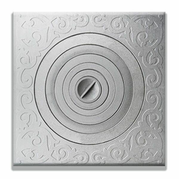 Внешний (габаритный) размер - 700х700х26,5 мм, толщина полотна 16,5 мм. Диаметры колец (проемы) - 480 мм; 380 мм; 300 мм; 220 мм; 165 мм; 100 мм.