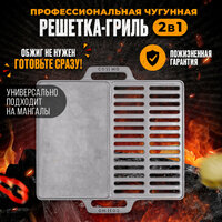 Универсально подходит для большинства мангалов. Хотите получать стейки как от шеф-повара ресторана? Рады представить вам профессиональную чугунную комбинированную решетку со сковородкой COSSMO. Рабочая поверхность 50х40 см, плюс ручки. Толщина 1,6 см. В отличие от других производителей мы не покрываем наши издели техническим маслом в черный цвет и они имеют естественный вид – на ней можно сразу готовить без дополнительного длительного обжига. Становиться черной она будет во время естественной напитке жиром. (нужно просто нагреть и смазать пищевым маслом перед готовкой). Гриль противень имеет две рабочие зоны: с ребрами - которая идеально подходит для превосходного приготовления мяса барбикю, стейков, шашлыка, котлет, купат и сосисок, курицы и овощей-гриль и сплошную, подходящую для приготовления блинчиков, хот догов, омлета, бургеров, гренок, пиццы. Прекрасно подойдет на подарок мужу , начальнику , брату , отцу , сыну , другу , парню , мужчине. Сделайте свой отдых на природе, в кемпинге и в походной кухне идеальным!