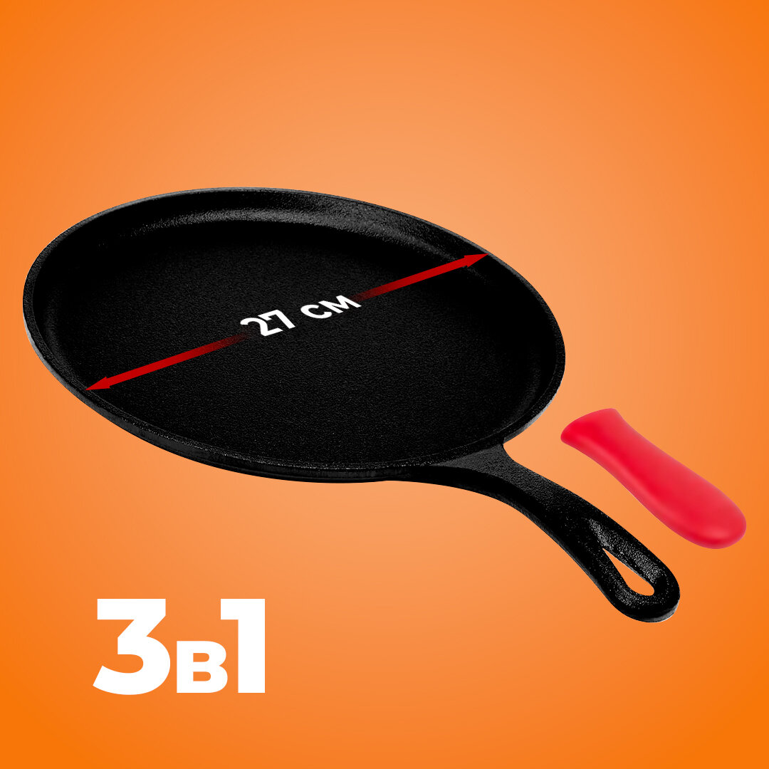 Чугунная сковорода для блинов 27 см с толстым дном, блинница подходит для индукционных плит Oberhof Pfannkuchen K-07: сравнение цен, характеристики, фото, актуальное наличие и цены.