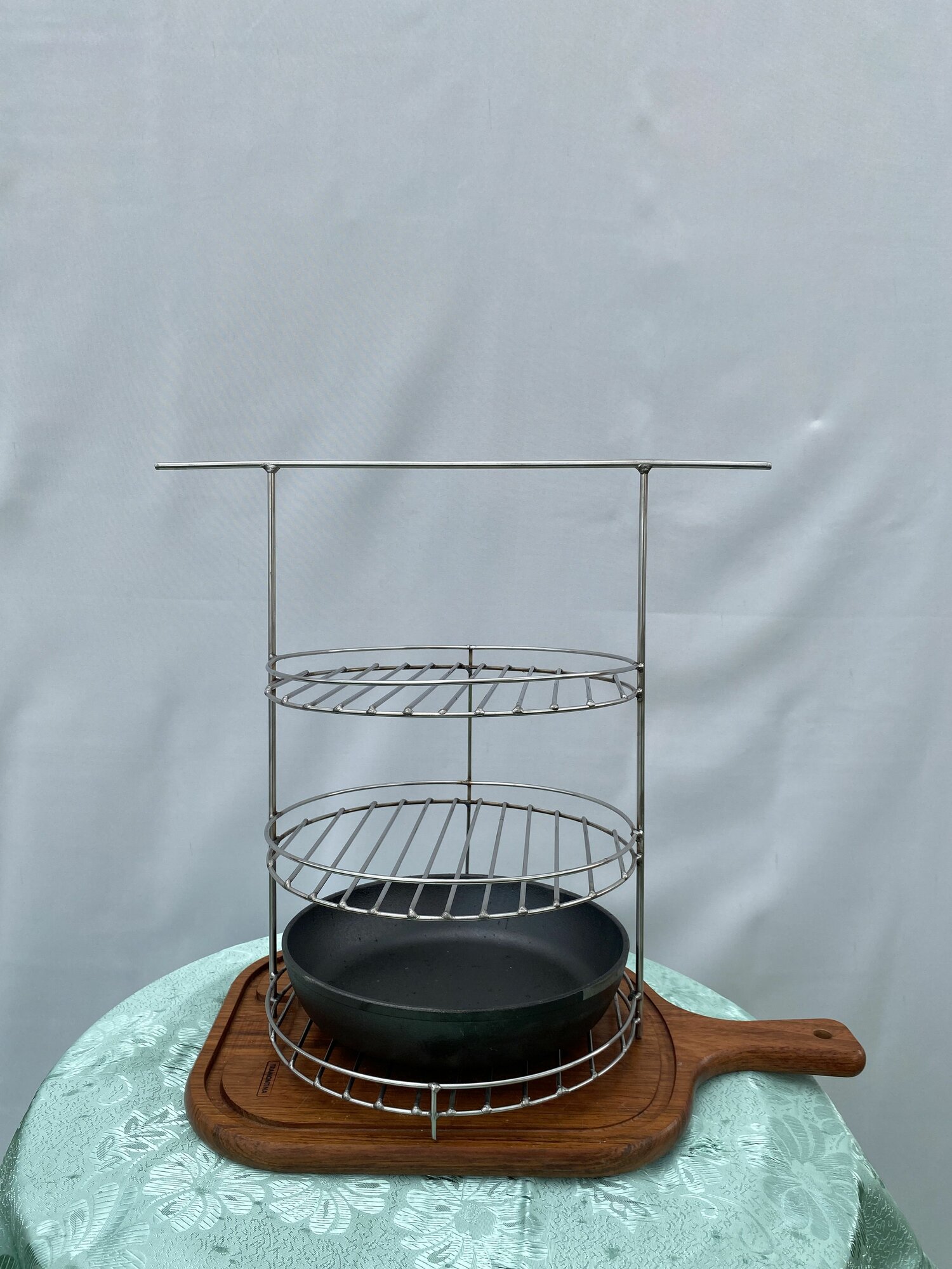 Предназначена для загрузки гарнира или овощей. Служит как жароотсекатель если поставить на нижний ярус. Сок с мяса попадает прямиком в сковороду в следствии чего исключается подгорание гарнира.