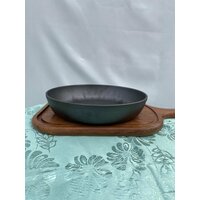 Сковорода для тандыра чугунная изготовлена путём отрезания ручки от сковороды чугунной литой для удобства погружения в тандыр. Боковой спил не влияет на функционал сковороды.