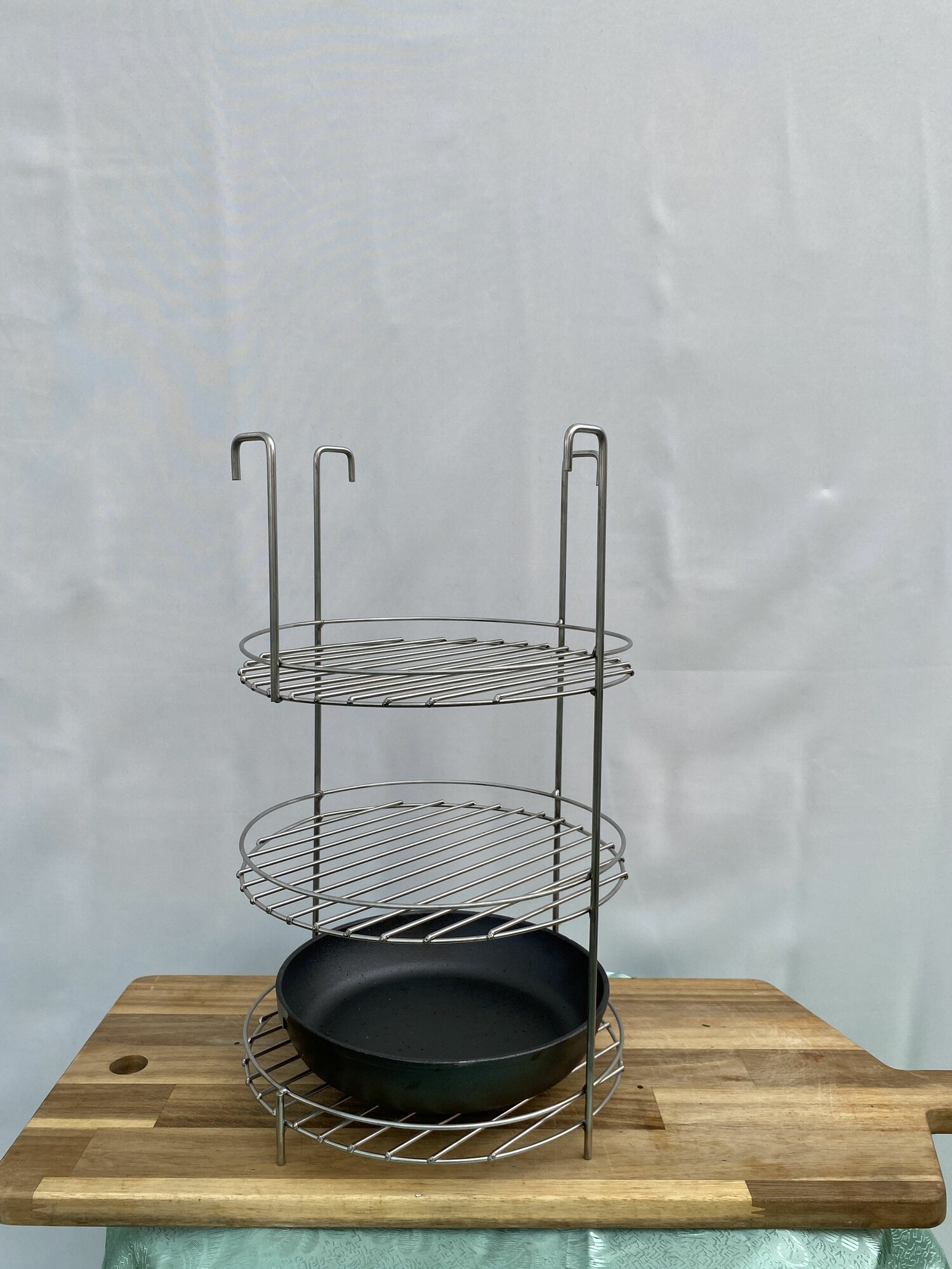 Предназначена для загрузки гарнира или овощей. Служит как жароотсекатель если поставить на нижний ярус. Сок с мяса попадает прямиком в сковороду в следствии чего исключается подгорание гарнира.