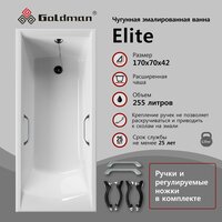 Чугунная ванна Goldman Elite 170x70x42 с квадратными хромированными ручками: сравнение цен, характеристики, фото, актуальное наличие и цены.
