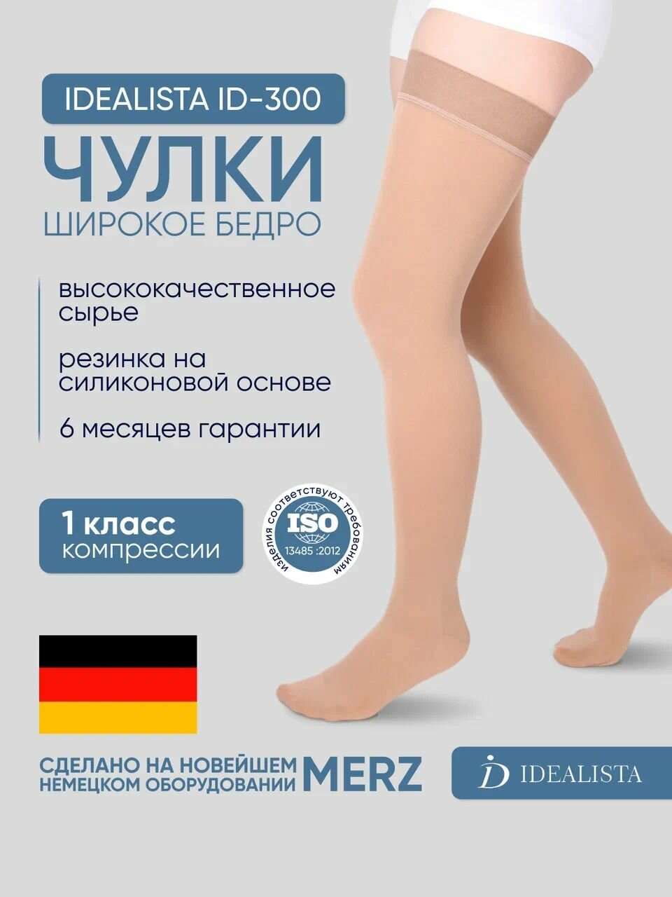 Чулки компрессионные Idealista ID-300W, резинка на силиконовой основе, на широкое бедро, 1 класс, Размер XL, Длина 62-71, Карамель: сравнение цен, характеристики, фото, актуальное наличие и цены.