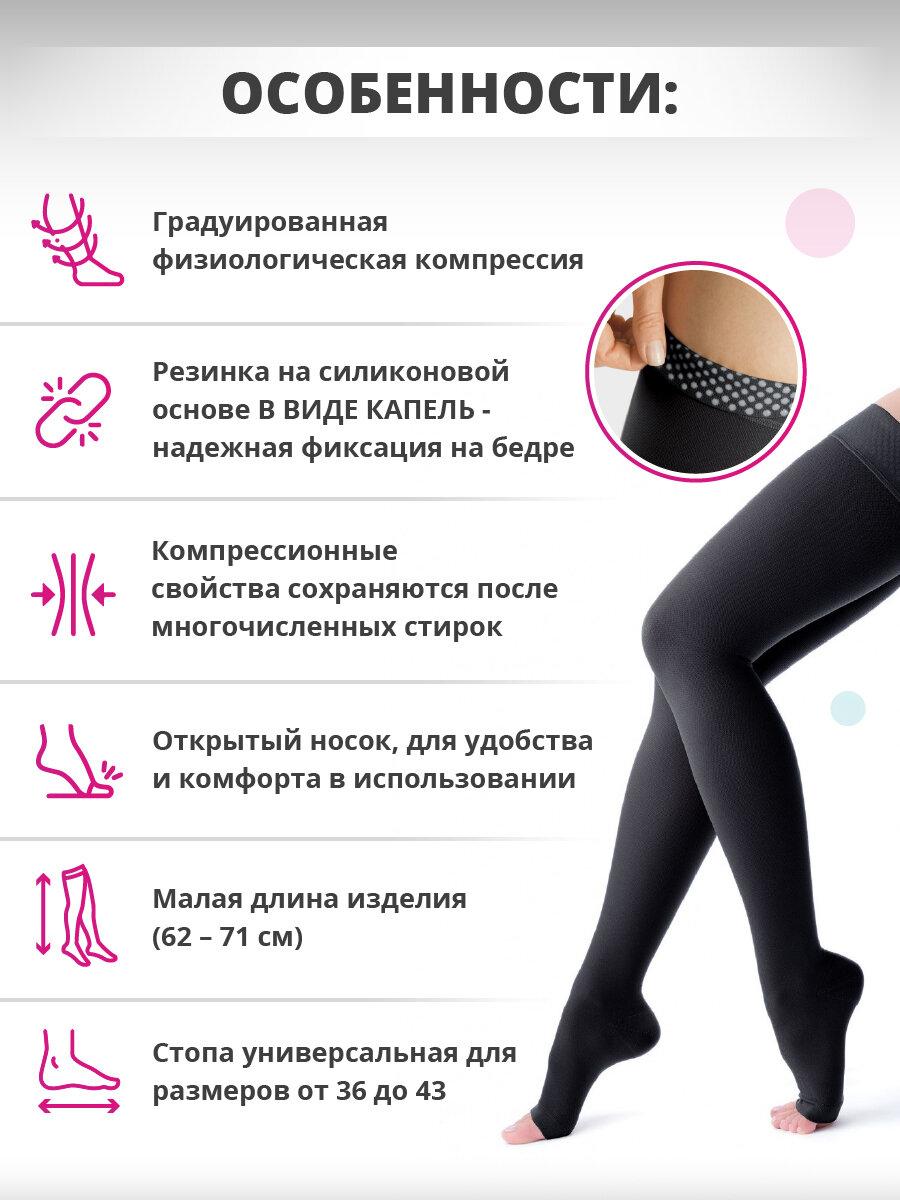 | Особенности | матовые, плотные, подходит для беременных, резинка на силиконовой основе, с антибактериальным эффектом, с укрепленным мыском, усиленные мысок и пятка |