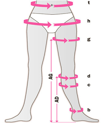 Размер изделия подбирается по индивидуальным анатомическим меркам конечности. Верхний край лечебного трикотажа должен располагаться на 5–10 см выше уровня поражения вены.