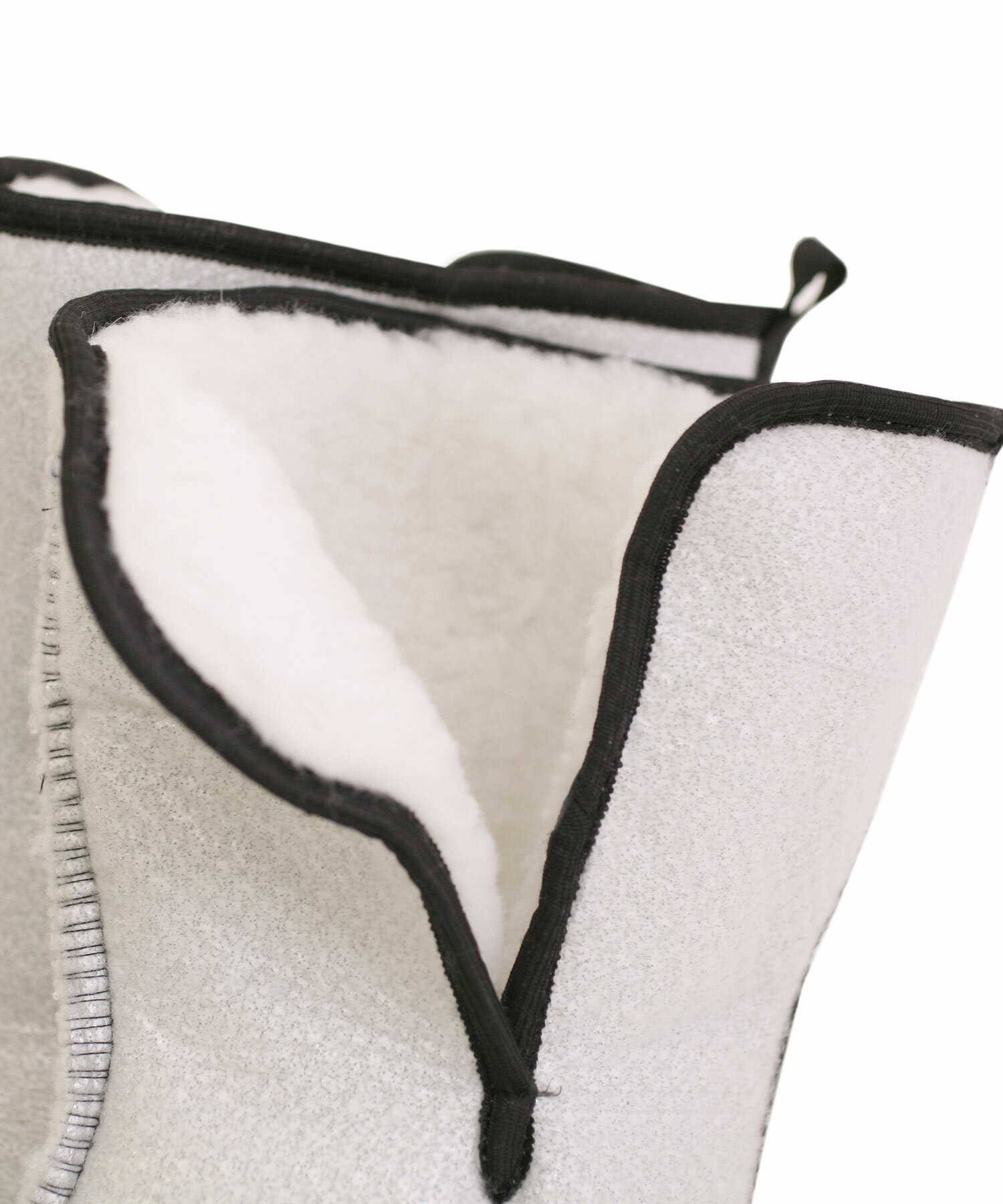 Чулки высотой 27 см подходят для универсального использования, как для мужчин, так и для женщин. Шерстяной мех в качестве верха создает дополнительный уют, а его элегантный белый цвет делает изделие стильным. Отсутствие защитного подноска и стельки подчеркивает легкость и гибкость конструкции, которая не ограничивает движения и обеспечивает свободный воздухообмен.