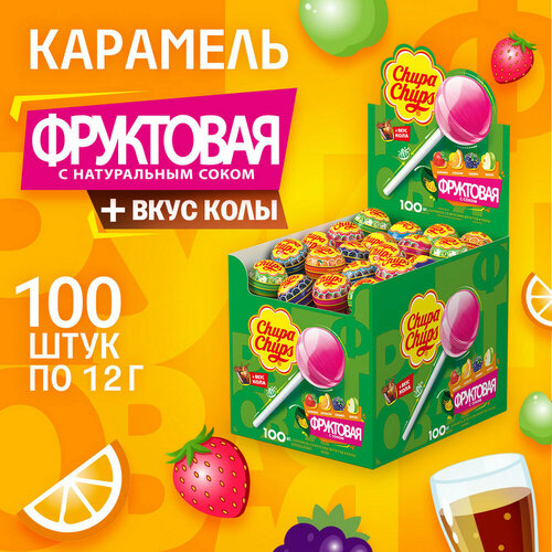 Chupa Chups Карамель на палочке Фруктовая + кола ассорти 12 г х 100 шт: сравнение цен, характеристики, фото, актуальное наличие и цены.