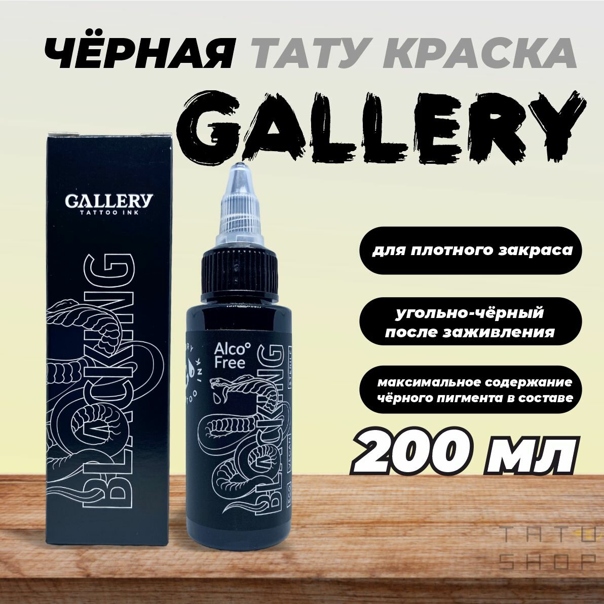 Краска для тату черная для плотного закраса BLACKING GALLERY TATTOO INK, 200 мл: сравнение цен, характеристики, фото, актуальное наличие и цены.