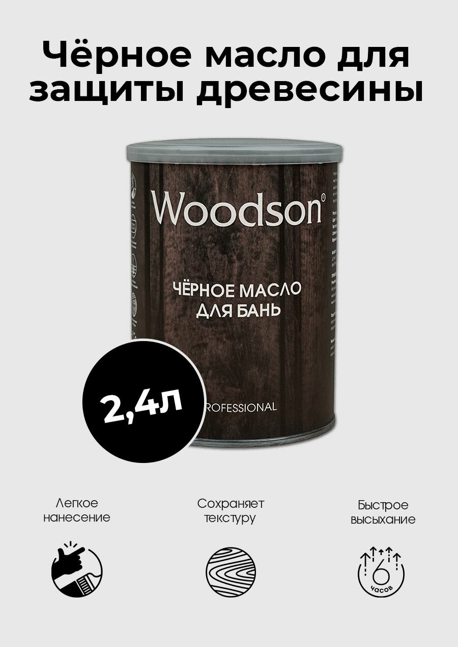 Купить Чёрное масло для защиты древесины Woodson (баня), 2,4л с доставкой по всей России. Чёрное масло для защиты древесины Woodson (баня), 2,4л: сравнение цен, характеристики, фото, актуальное наличие и цены.