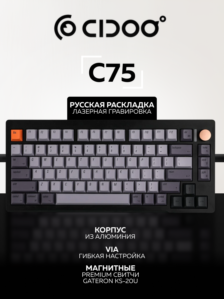 Купить Механическая клавиатура Cidoo C75 (Black), алюминий, магнитные переключатели с доставкой по всей России.