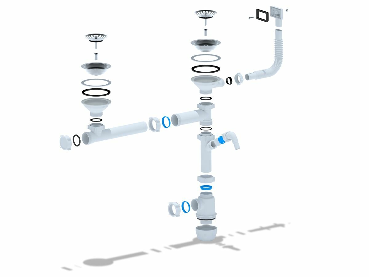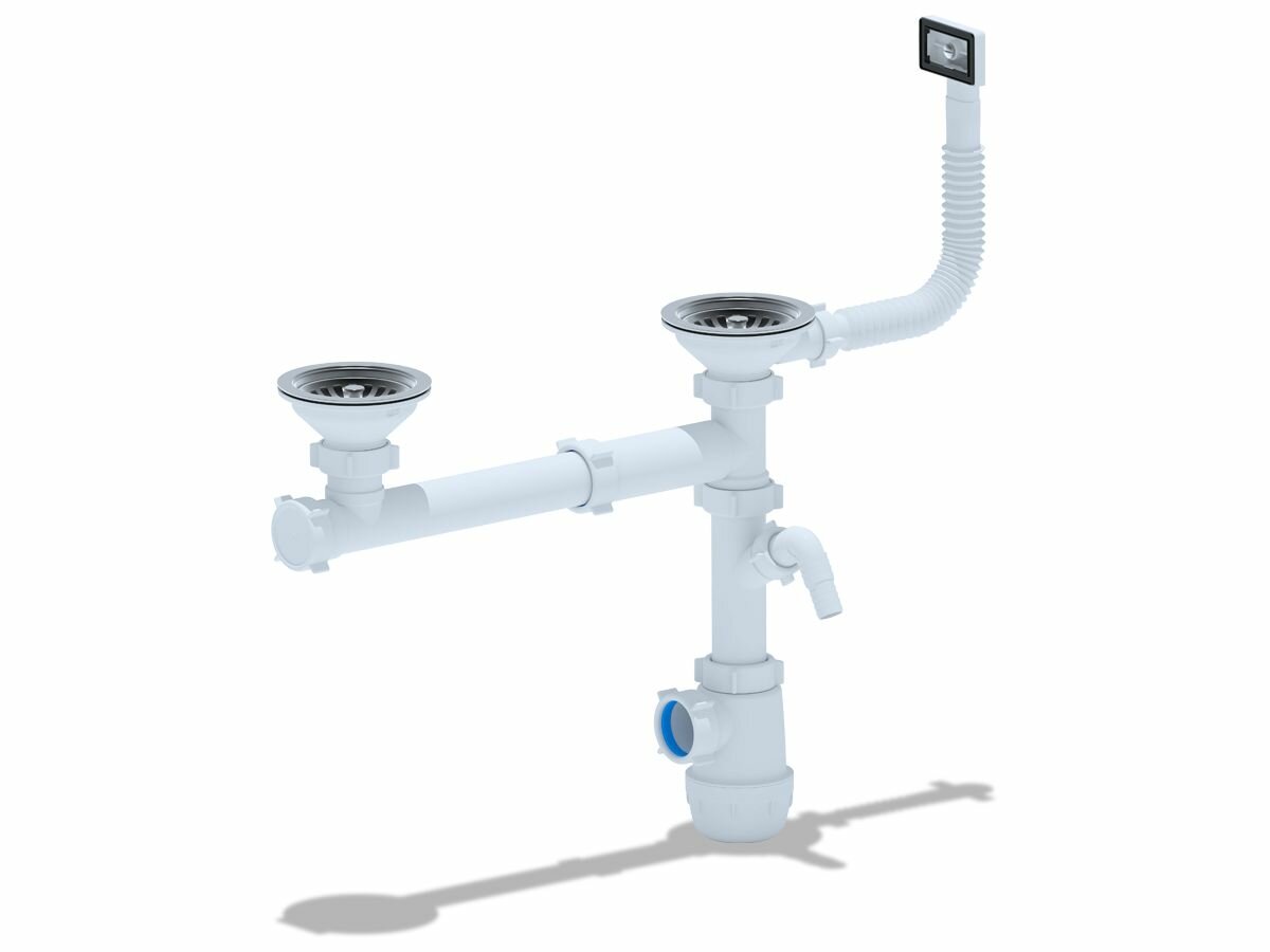 Купить Cифон АНИпласт A7500S АНИ Грот 3 1/2″*40 двойной смещенный с отводом для стиральной машины, с гибким переливом с доставкой по всей России.