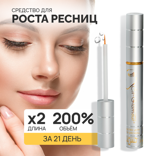 Алюминиевый флакон СильГламур с тонкой кисточкой. Презентабельная упаковка, подробная инструкция, линейка для ресниц (ресничкомер).