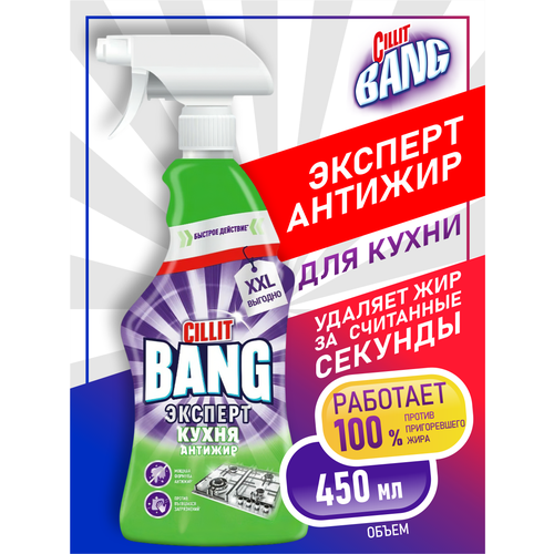 Мощное средство АнтиЖИР+Сияние. BANG и грязи как не бывало! Попробуйте по-настоящему мощное средство CILLIT BANG антиЖИР+сияние! Оно эффективно удаляет даже въевшийся пригоревший жир, а также масляные пятна и грязь за секунды! Чистые поверхности блестят как новые! Идеально подходит для ежедневной уборки кухонных поверхностей различного происхождения (в том числе мрамор, натуральный камень) и принадлежностей, таких как гарнитур (столешницы), плита, противни, кастрюли, сковороды, шампуры, гриль, разделочные доски и т. д. Мощное средство Анти-Жир + Сияние, 450 мл Мощное средство Анти-Жир + Сияние, 450 мл