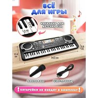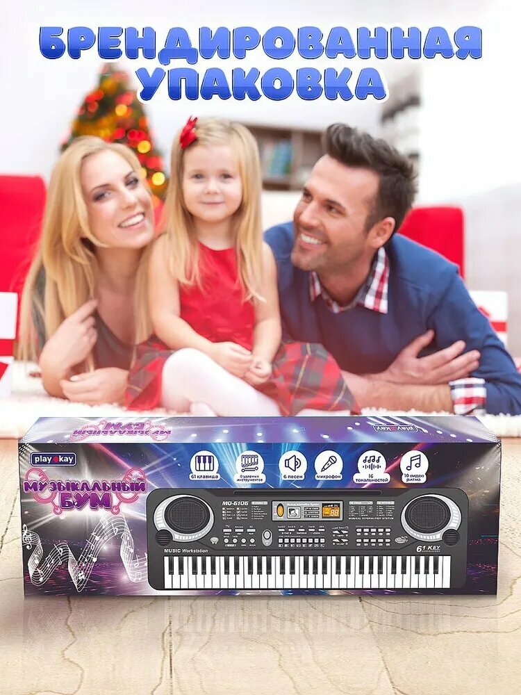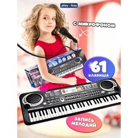 Купить Cинтезатор детский с микрофоном Play Okay питание от сети и батареек, USB подключение, 61 клавиша, черный с доставкой по всей России.