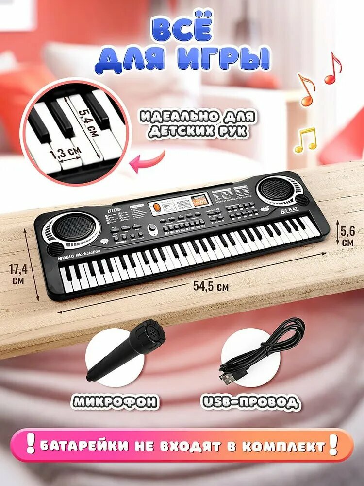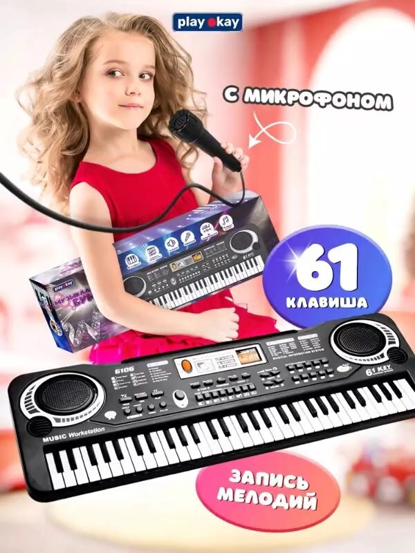 Cинтезатор детский с микрофоном Play Okay питание от сети и батареек, USB подключение, 61 клавиша, черный: сравнение цен, характеристики, фото, актуальное наличие и цены.