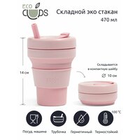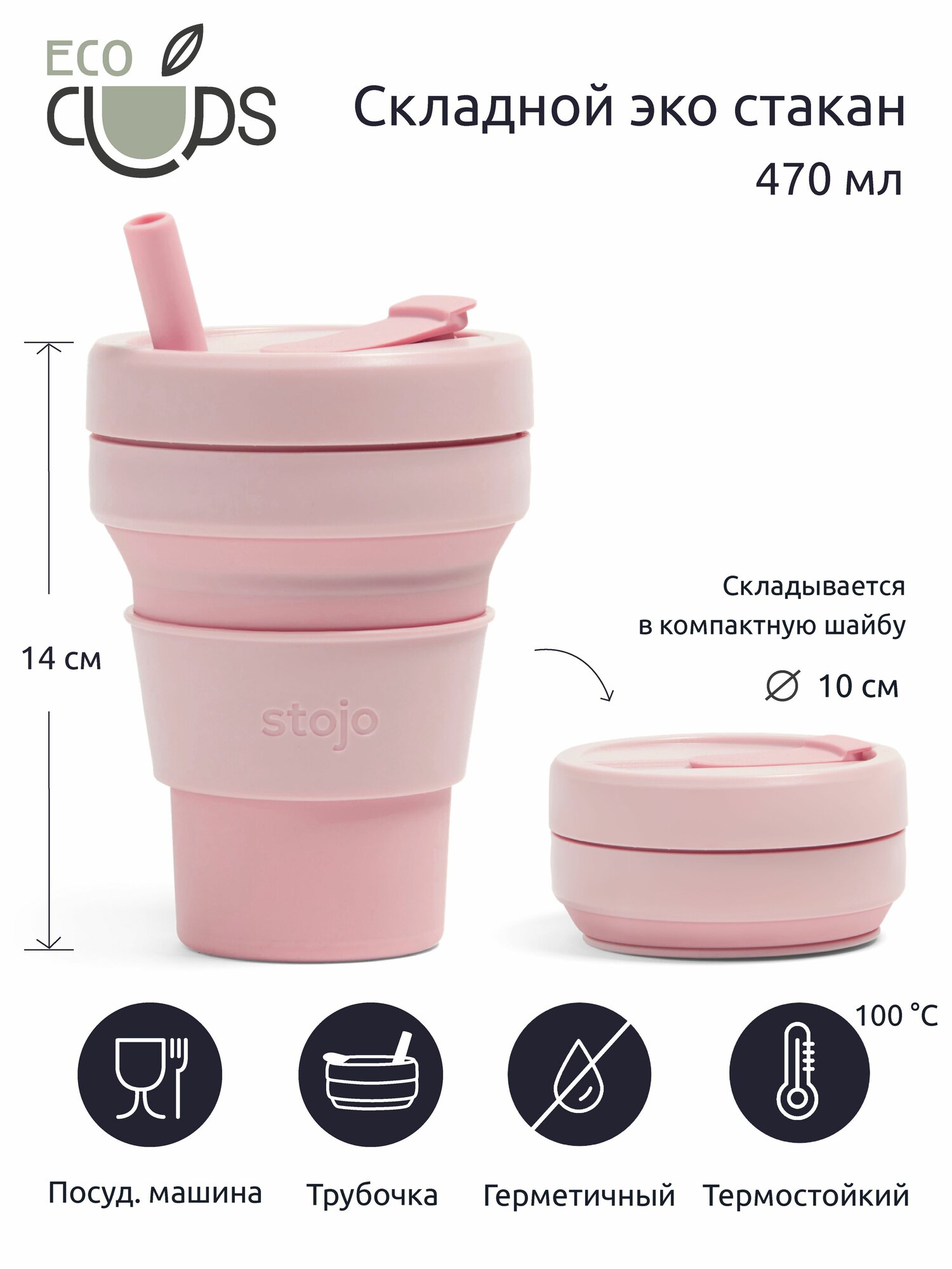 Cкладной стакан силиконовый с крышкой и трубочкой Stojo, цвет светло-розовый, Carnation, 470 мл: сравнение цен, характеристики, фото, актуальное наличие и цены.