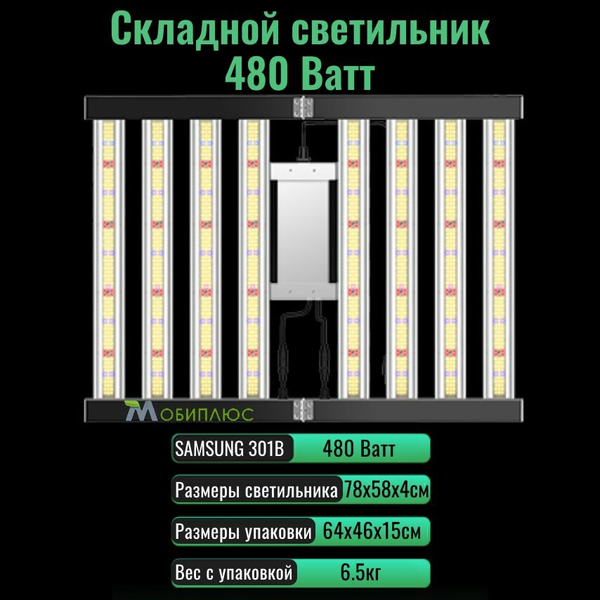 Cкладной светодиодный светильник (квантум борд) для выращивания растений 480 Ватт/ LM301B, 5000К: сравнение цен, характеристики, фото, актуальное наличие и цены.