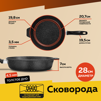 Сковорода ALWA 28 см изготовлена из литого алюминия, что обеспечивает прочность и долговечность изделия. Благодаря толстому дну и стенкам, сковорода способна долго и надежно удерживать тепло, обеспечивая равномерное прогревание поверхности. Сковорода оснащена антипригарным покрытием PFLUON на водной основе, которое не содержит вредных веществ, таких как PFOA, CADMIUM, LEAD. Это позволяет использовать минимум масла при жарке и тушении различных продуктов, сохраняя их вкус и полезные свойства. Эргономичная ручка из бакелита не нагревается и обеспечивает удобный и надежный хват. Сковорода легко моется от остатков еды и может быть помещена в посудомоечную машину. Сковородка подходит для всех видов плит, кроме индукционных, и может использоваться как дома, так и на даче или на мангале. Кухонная утварь от Альва - это универсальный подарок папе, мужчине, любимому, мужу, папе на юбилей, 23 февраля. Женщине, маме, бабушке на день рождения, подарок на 8 марта. Её можно брать с собой в рыболовный лагерь, на отдых на природе, кемпинг, подойдет для открытого огня, мангала, дачи, пикника, столовой, хостела, отеля или с легкостью готовьте на газу. Наш инвентарь - мечта любой хозяйки. Товары для приготовления и кухонная утварь от ТМ "Алва - это идеальное решение для тех, кто ищет надежную и удобную посуду для приготовления вкусных блюд. Выбирая сковороду ALWA 28 см, вы получаете качественный и удобный в использовании продукт, который станет незаменимым помощником на вашей кухне.