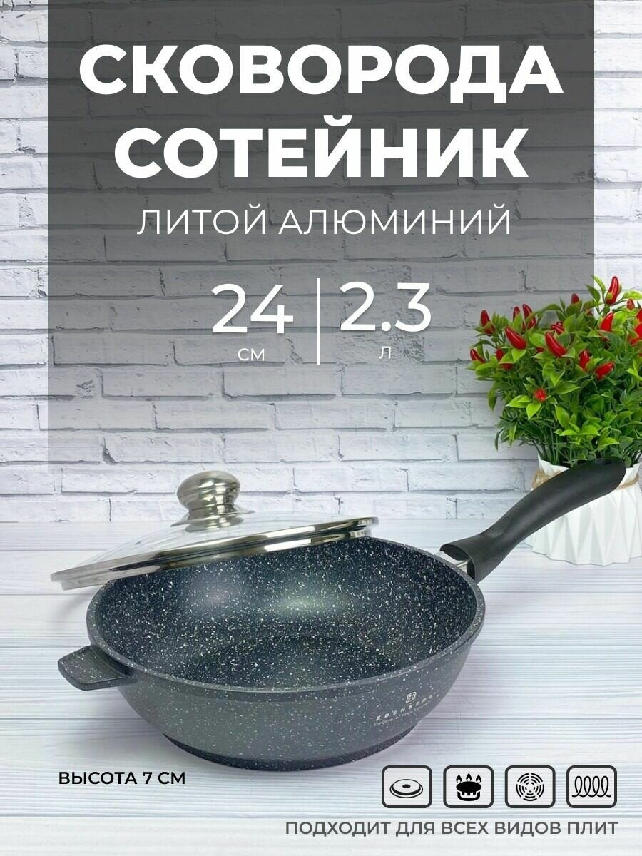Cковорода с крышкой глубокая Edenberg 24 см 2,3л с антипригарным покрытием для газовой, электрической и индукционной плиты: сравнение цен, характеристики, фото, актуальное наличие и цены.