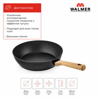 Серия глубоких сковород Walmer York – нежная любовь и тех, кто умеет готовить, и тех, кто совершает первые шаги в этом направлении. Высокие бортики позволяют разогревать большие порции, не забрызгивая плиту, делать более сложные блюда. Светлая ручка из бакелита с покрытием soft-touch надежно удерживается в руке. А главное – такая сковорода совершенно универсальна и «дружит» со всеми плитами.