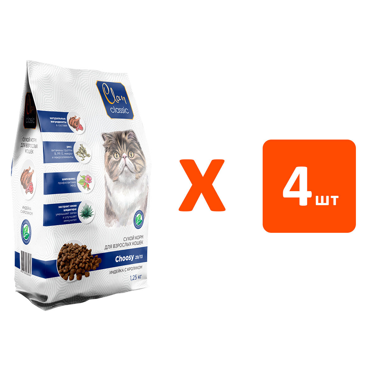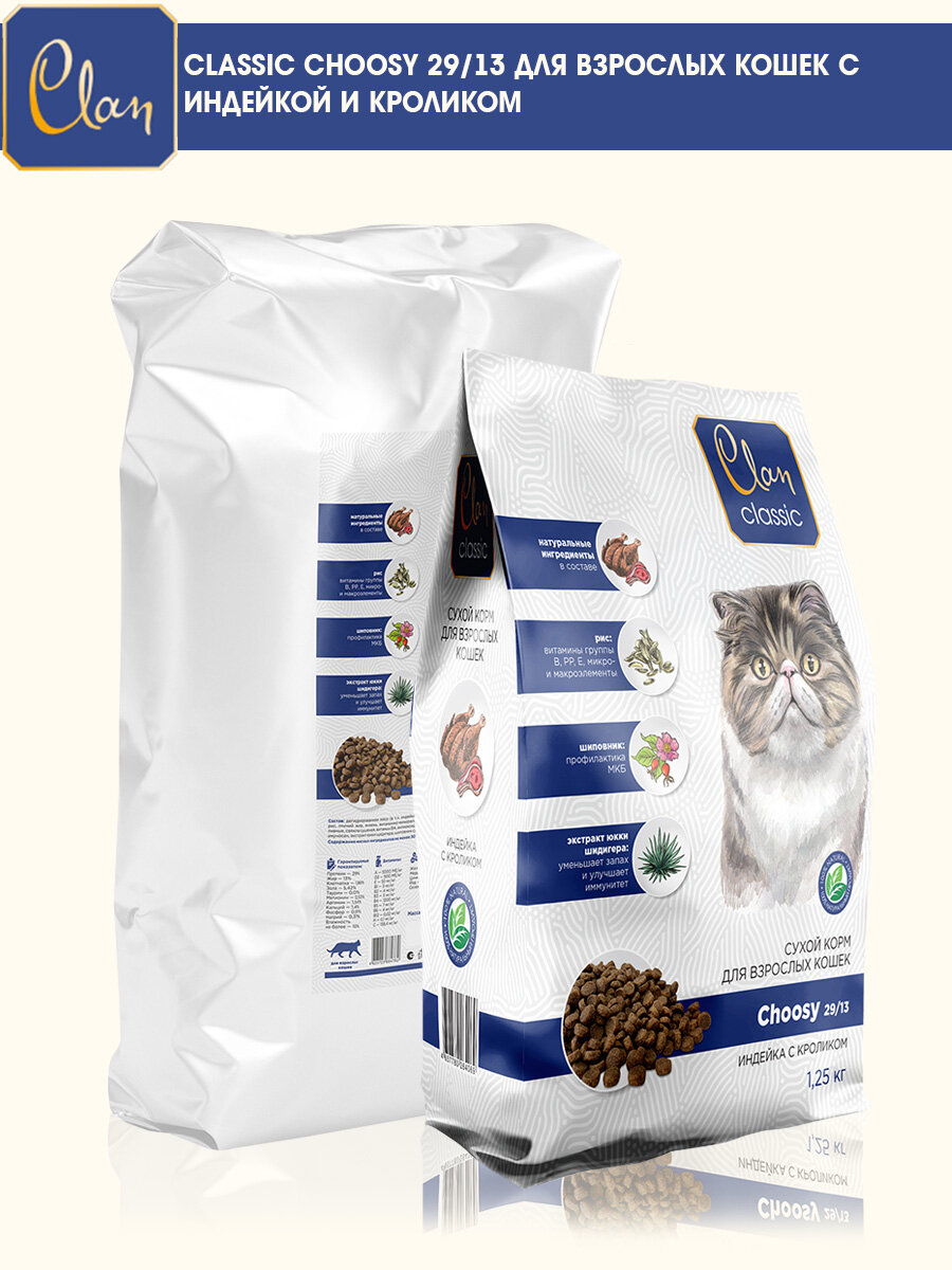 CLAN CLASSIC CHOOSY 29/13 для взрослых кошек с индейкой и кроликом (1,25 кг х 4 шт): сравнение цен, характеристики, фото, актуальное наличие и цены.