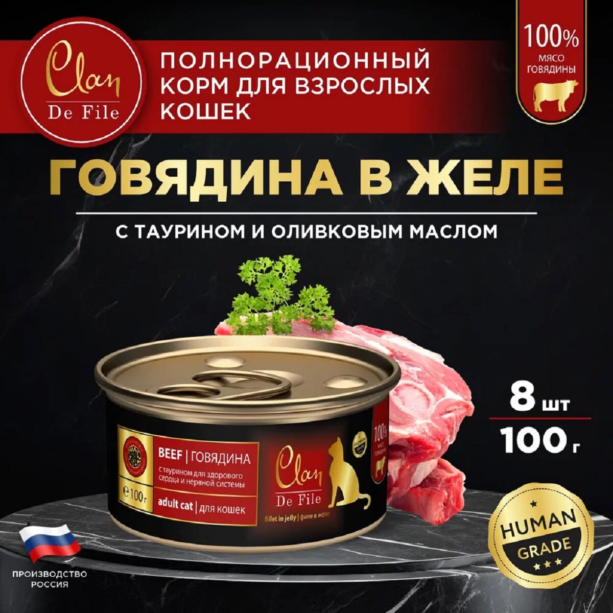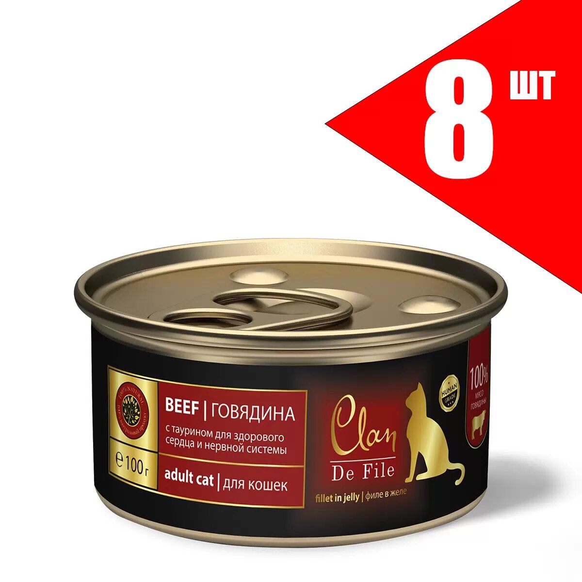 Купить CLAN De File консервы для кошек 100 г Говядина (8 банок) с доставкой по всей России. CLAN De File консервы для кошек 100 г Говядина (8 банок): сравнение цен, характеристики, фото, актуальное наличие и цены.