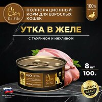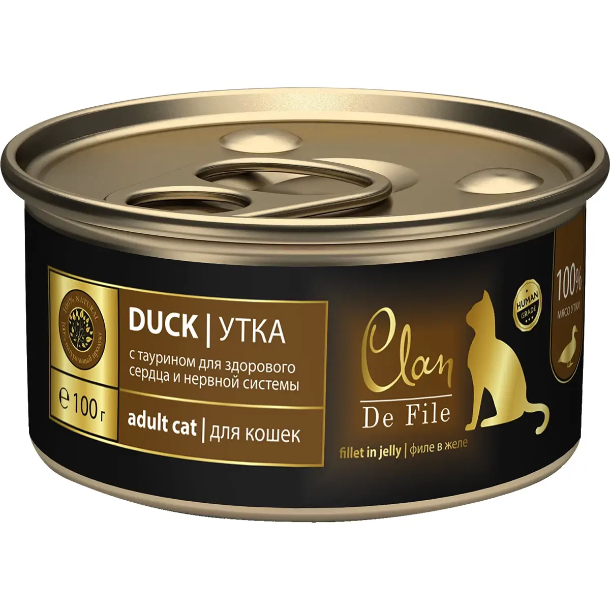 Влажный корм для кошек Clan De File из цельных кусочков мяса утки в нежном желе - это российский, полнорационный корм супер премиум класса, холистик. Сбалансированный состав обеспечивает питание как в дикой природе: отборное мясо, без зерна.