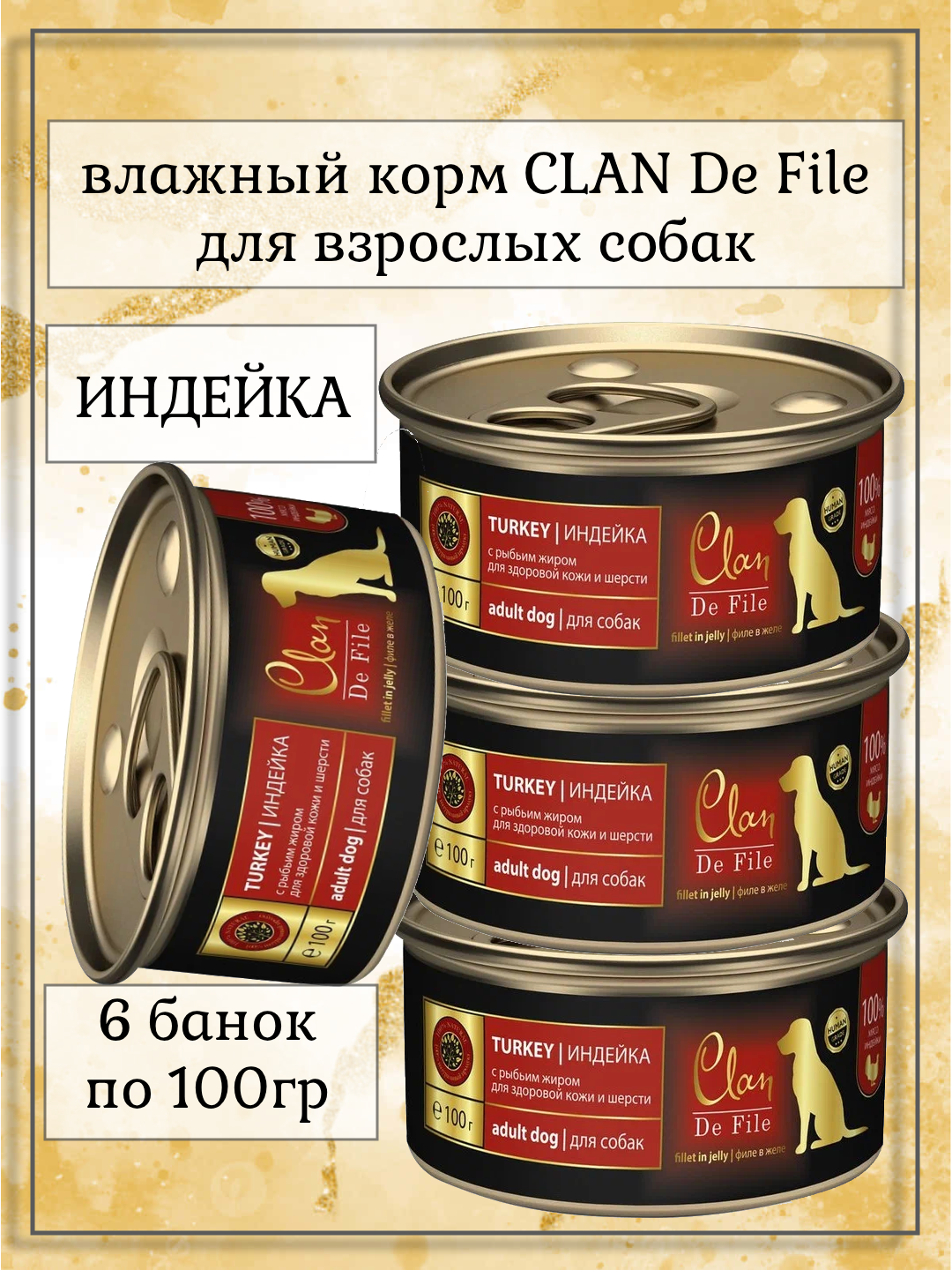 CLAN De File консервы для собак Индейка 100гр (6 штук): сравнение цен, характеристики, фото, актуальное наличие и цены.