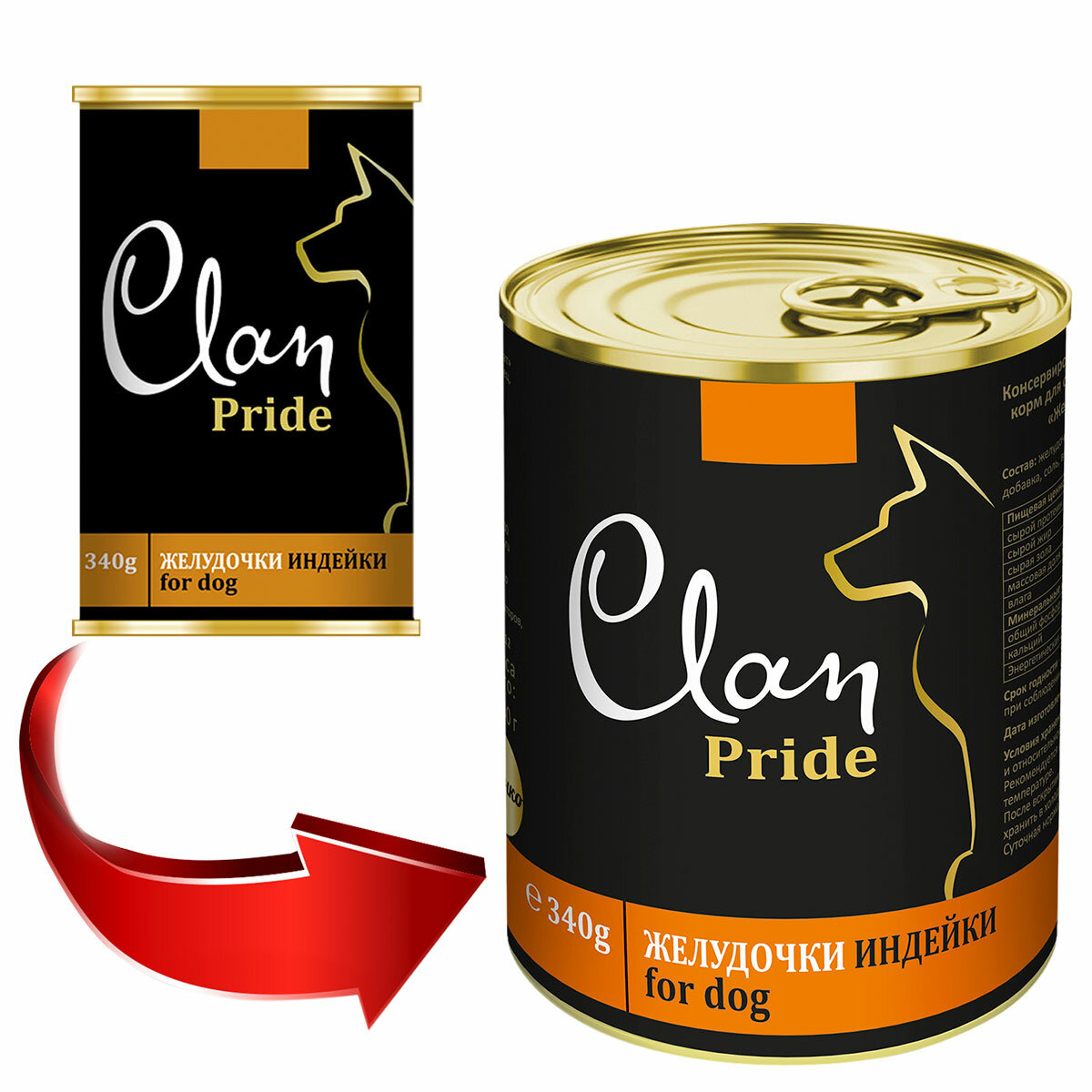 CLAN PRIDE для взрослых собак с желудочками индейки (340 гр х 6 шт): сравнение цен, характеристики, фото, актуальное наличие и цены.