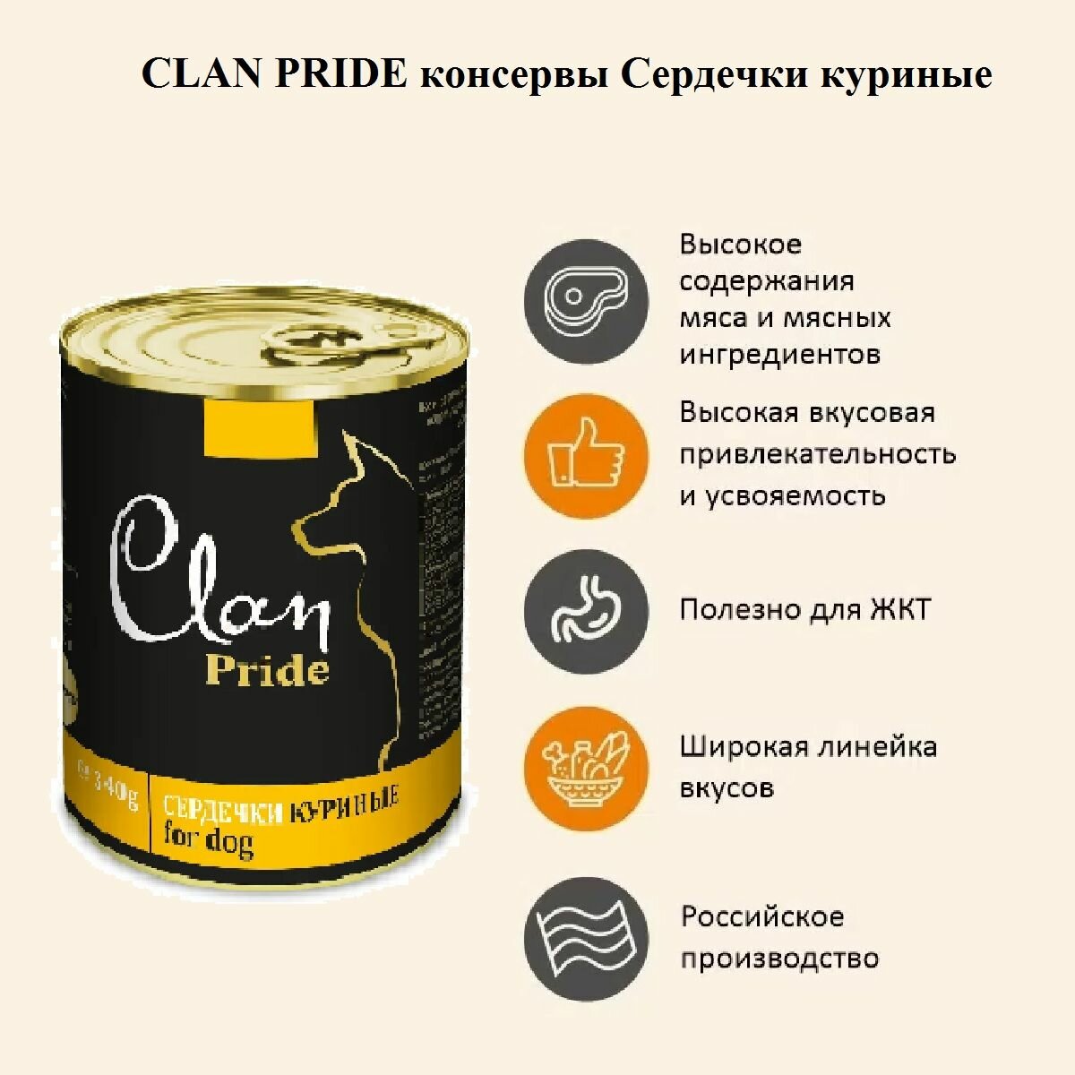 CLAN PRIDE консервы для собак 340 г Сердечки куриные (6 банок): сравнение цен, характеристики, фото, актуальное наличие и цены.