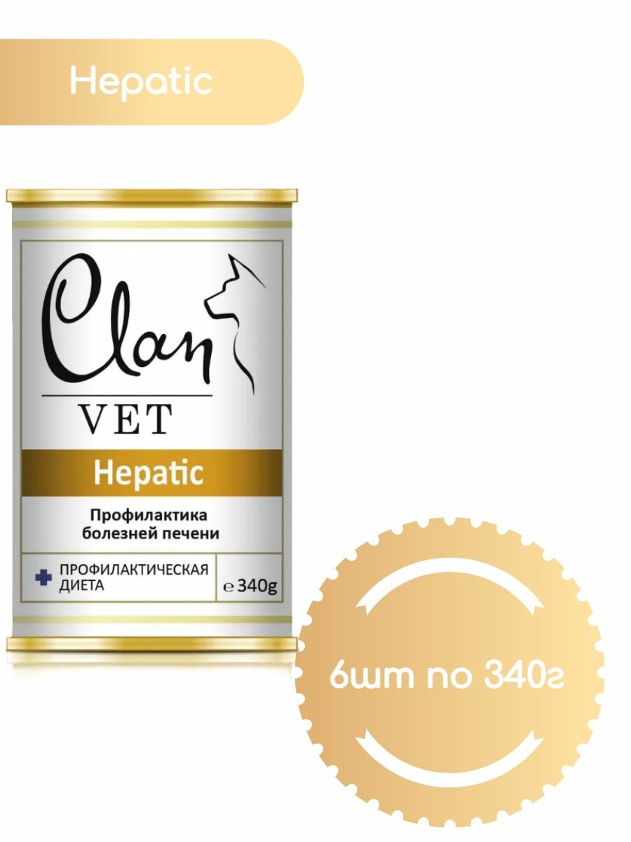 CLAN VET HEPATIC диетические консервы для собак Профилактика болезней печени 340г (6 банок): сравнение цен, характеристики, фото, актуальное наличие и цены.