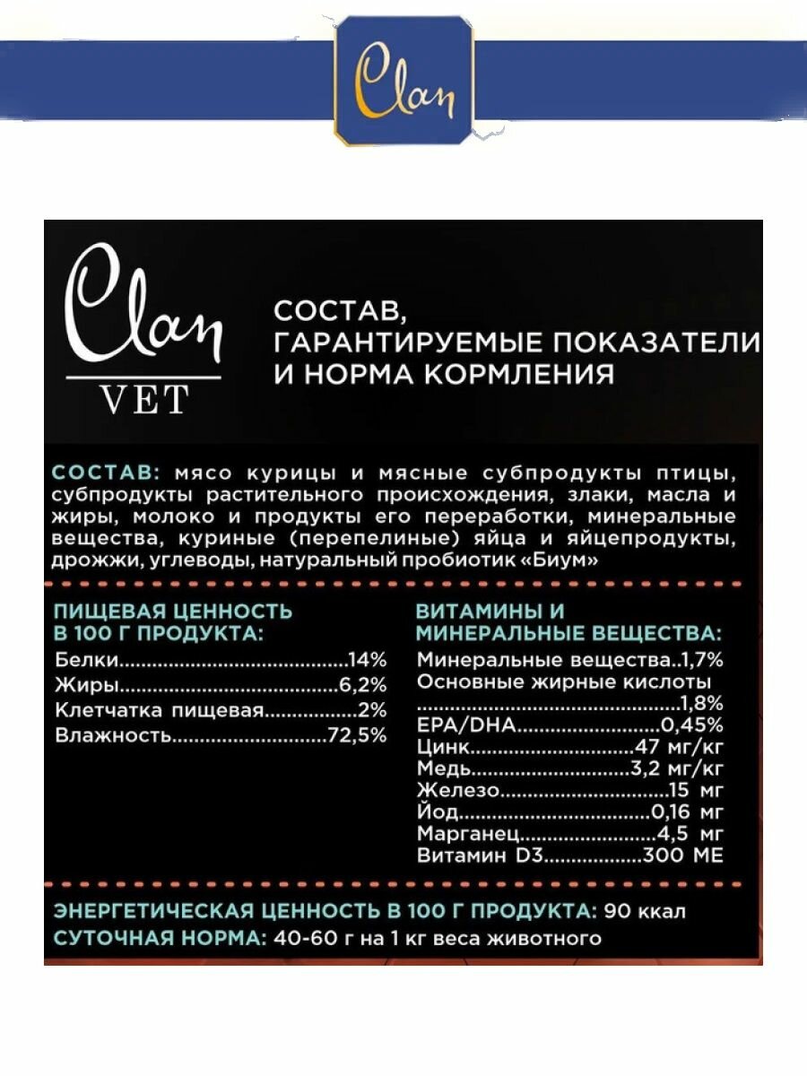 Купить CLAN VET RECOVERY диетические консервы для собак и кошек Восстановительная диета 340г (6 банок) с доставкой по всей России.