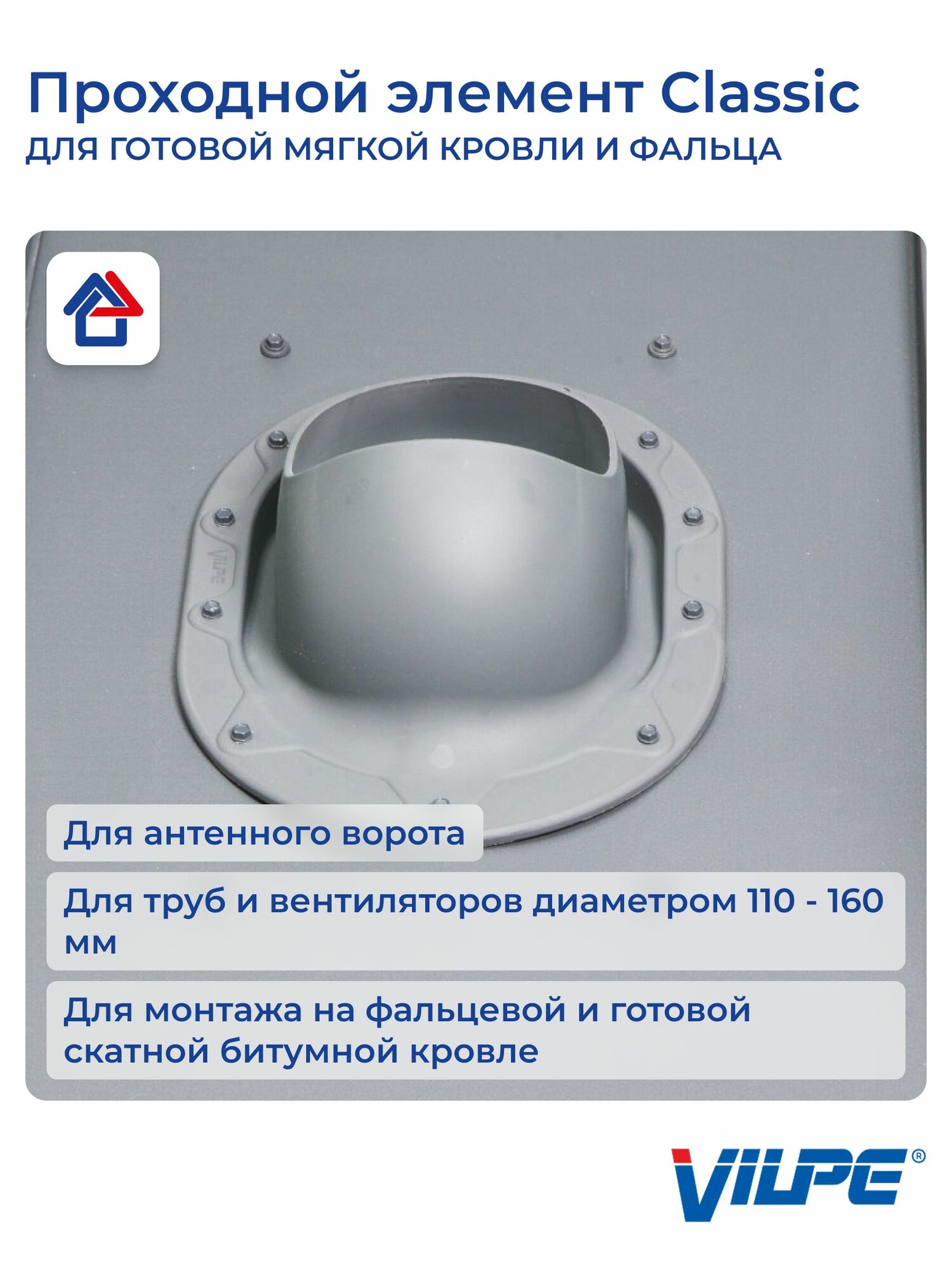 CLASSIC проходной элемент для монтажа на фальцевой и готовой битумной скатной кровле труб и вентиляторов диаметром 110 –160 мм и антенного ворота.