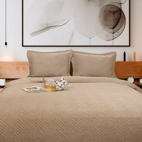 Покрывало на кровать и диван с двумя наволочками Cleo MUSCAT евро макси 230х250, светло-бежевое: сравнение цен, характеристики, фото, актуальное наличие и цены.