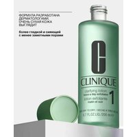 Отшелушивающий лосьон для сухой и очень сухой кожи Clarifying Lotion 1 — это второй этап 3-ступенчатой системы ухода за кожей от Clinique. Бережно и мягко удаляет загрязнения и омертвевшие частички. Стимулирует процесс регенерации клеток, делая кожу более гладкой и упругой и сияющей. Подготавливает кожу к нанесению увлажняющего крема — отшелушенная кожа более восприимчива к уходовым средствам. При более сухой коже применение два раза в день помогает удалить поверхностные чешуйки, препятствующие впитыванию влаги. Помогает избавиться от мелких сухих морщинок. Протестирован дерматологами. Не содержит отдушек, парабенов, фталатов и масел. Активные компоненты: • Экстракт гамамелиса - успокаивает кожу, оказывает противовоспалительное действие, обладает антиоксидантной защитой • Салициловая кислота - отшелушивает, очищая поры и визуально сужая их • Ацетилглюкозамин - оказывает отшелушивающее действие, визуально улучшает состояние проблемной кожи