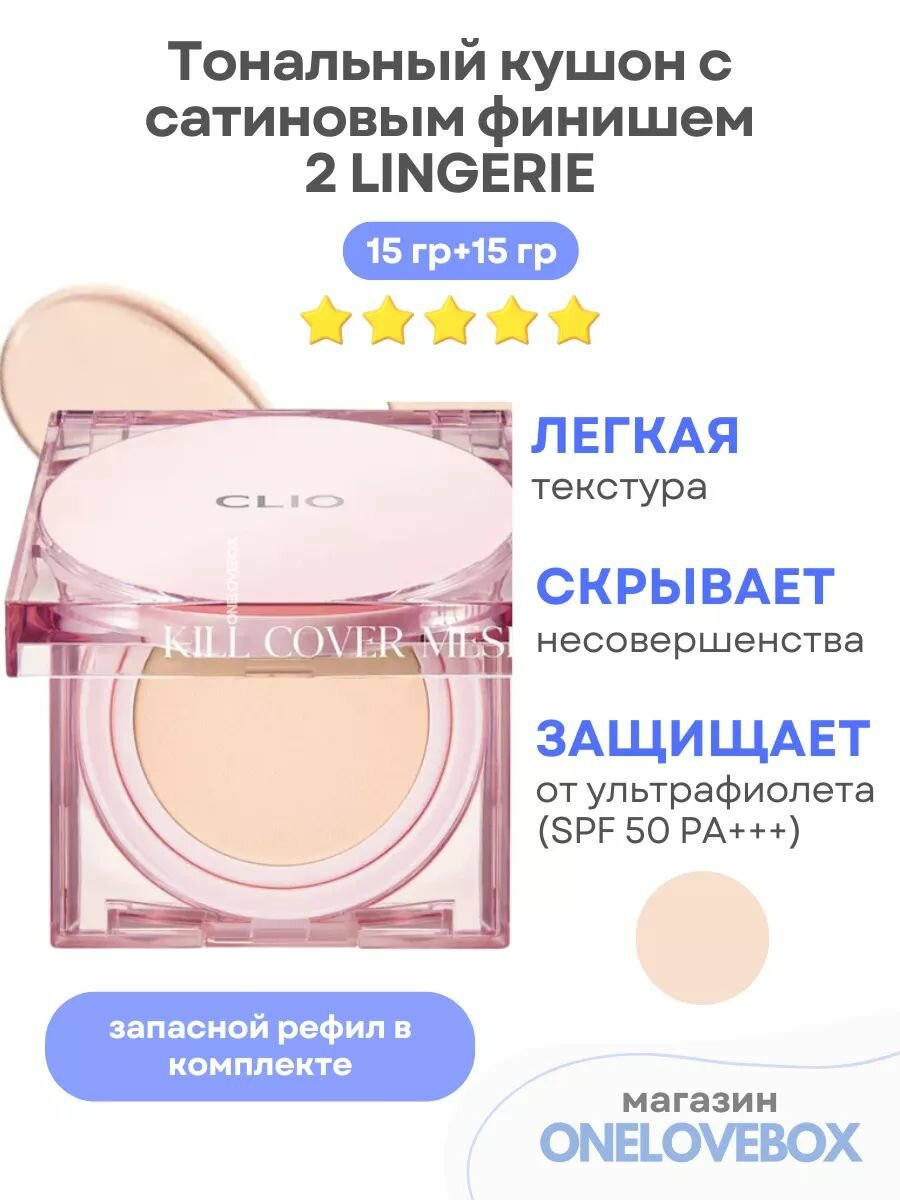 CLIO KILL COVER MESH GLOW CUSHION (Spf 50+) 2 LINGERIE — Тональный кушон с сатиновым финишем: сравнение цен, характеристики, фото, актуальное наличие и цены.