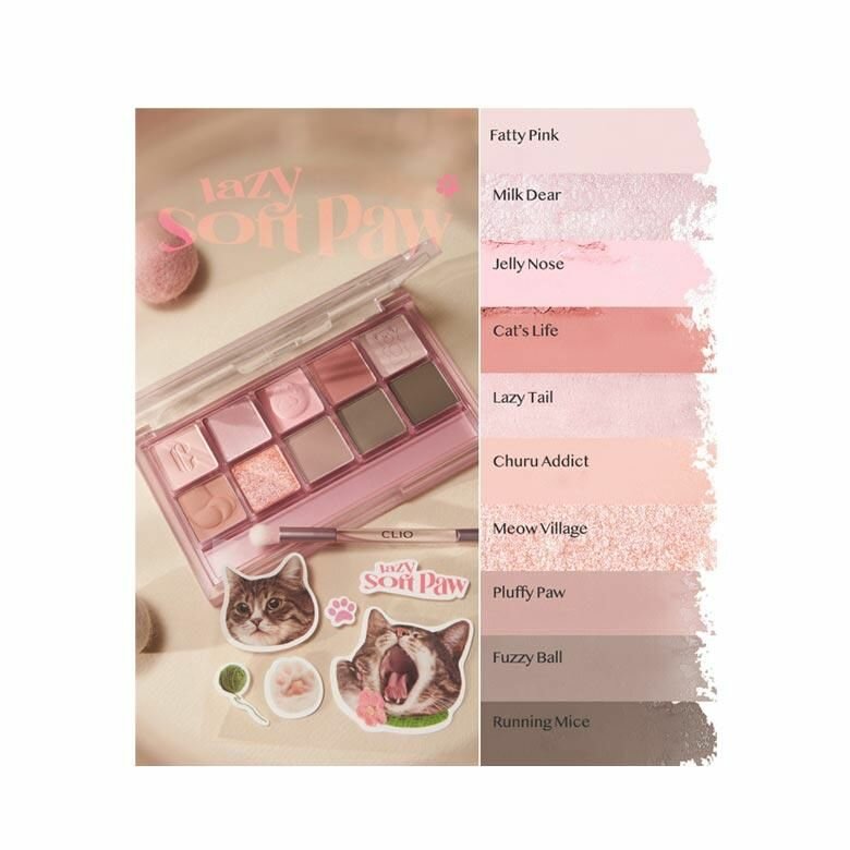 - 020 Lazy Soft Paw — 10 розовых и коричневых оттенков. К палетке прилагаются милые стикеры с котами.