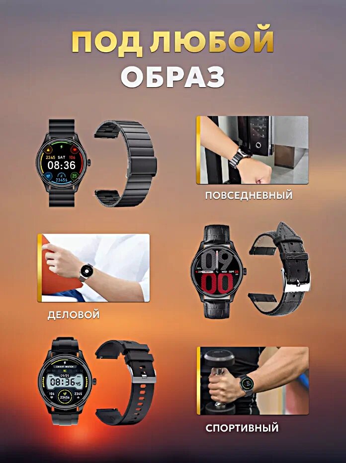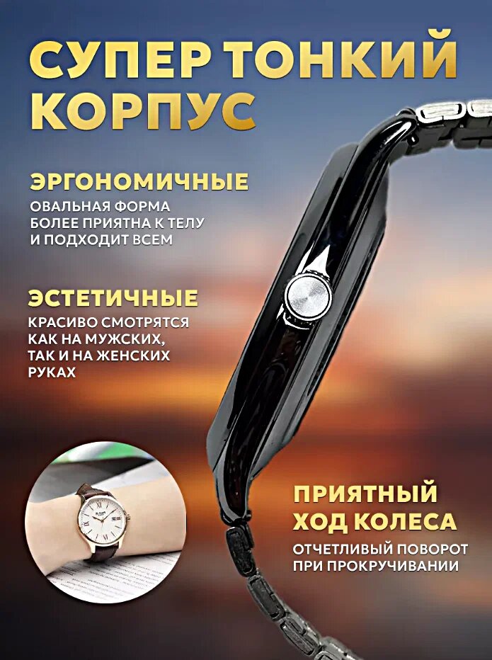 Представляем Вам совершенно новые наручные смарт часы шикарного дизайна и огромного функционала - от звонков и приема сообщений и уведомлений, управления камерой до контроля Вашего состояния здоровья, а именно подсчета калорий, мониторинга сна, шагомера, измерения давления, пульса. и др. Модные часы электронные на руку с датчиками отлично подходят как подростковые, так и мужские или женские часы. В набор входят – часы, 3 браслета (силиконовый, металлический и кожаный ремешок), беспроводная зарядка и инструкция. Smart watch произведены из крепкого алюминиевого корпуса, водонепроницаемые и имеют степень защиты от попадания пыли и влаги IP 67. Цифровые классические часы принимают уведомления с мессенджеров и сообщения с любых телефонов, таких как Apple IPhone, Samsung, Xiaomi, Redmi, Huawei. С их помощью Вы можете говорить, не вынимая айфон из кармана или сумки, ведь в них встроен отличный динамик и микрофон. Смарт-часы сопрягаются со смартфонами и операционными системами IOS 10.0 и выше и Android 5.0 (андроид) и выше. Это отличное дополнение к Вашему комплекту электроники. Привлекательный дизайн позволяет использовать водостойкие спортивные фитнес часы с любой одеждой и выбранным вами образом. Уверены, что вам придутся по нраву современные оригинальные часы от проверенного производителя. Стильные умные круглые часы смотрятся на руке как украшение и подойдут как аксессуар для людей всех возрастов. Для настройки и взаимодействия телефона с сенсорными часами разработано приложение, скачать которое можно считав QR код в часиках, в инструкции, либо на коробке. Красивые smartчасы для мужчин и женщин - это полноценный гаджет для спорта, ходьбы, бега, туризма. Смартчасы будут отличным подарком на любой праздник: День рождения, 8 марта, 23 февраля, 14 февраля. Эти большие туристические ultra вотч wear ultimate телефон выбирают за большой экран, быстрый сенсор, калькулятор, игры, компас и мульти-спортивные режимы.