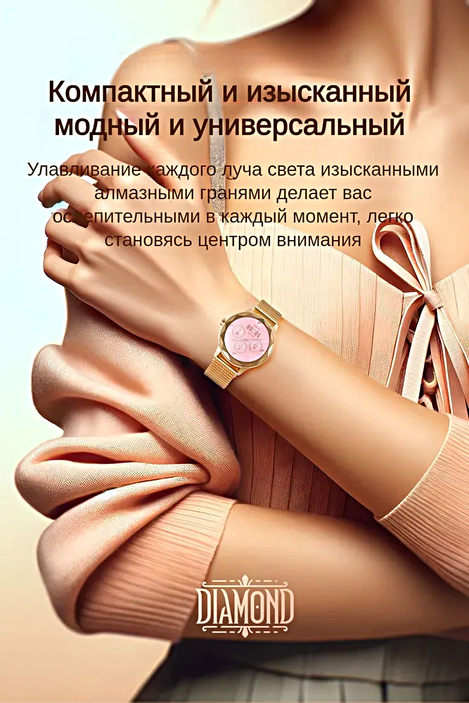 Элегантные и изящные женские умные часы изготовлены из высококачественных материалов, что позволяет носить их долгие годы.