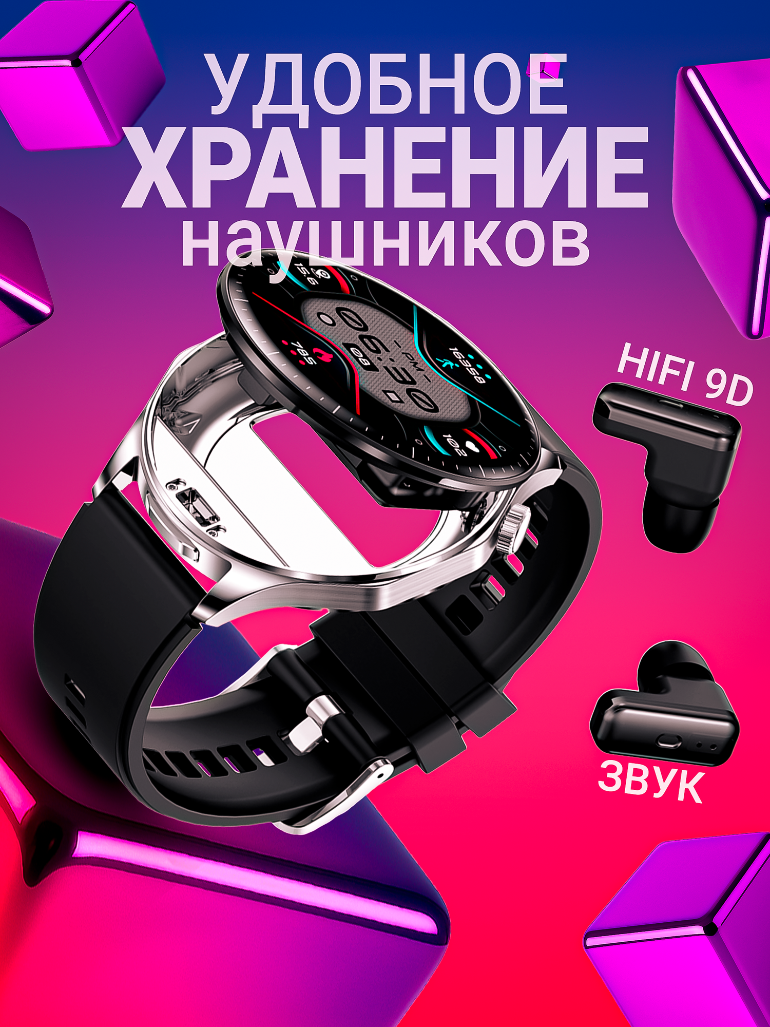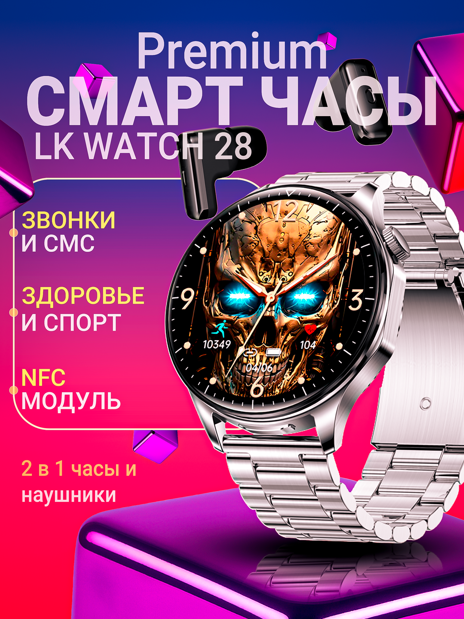 Купить Cмарт часы с наушниками WATCH 28, умные часы нового поколения с Amoled и HiFi 9D звуком фитнес браслет, серебристые с доставкой по всей России.